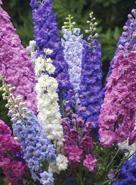 new day Un mélange de grandes marguerites, rassemblant toutes les formes et couleurs de Gazania. Certainement l'assortiment offrant les variétés les plus flamboyantes et les plus nombreuses. Exceptionnelles par la durée de leur floraison - de mai à octobre- et par la saisissante beauté de leur inflorescence. Pied d’Alouette Ces vivaces de taille intermédiaire fleurissent en été et résistent bien aux intempéries, ce qui les dispense de tuteurage. Irremplaçables au premier plan des massifs romantiques, en jardinière, en pots près de la maison, ou dans les bouquets, ces plantes s'épanouissent au soleil dans les sols riches, profonds, perméables.