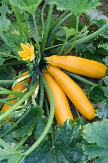 Cette variété ancienne produit une abondance de fruits allongés à consommer de préférence avant qu'ils n'atteignent plus de 15 cm. Leur épiderme vert foncé renferme une chair douce.